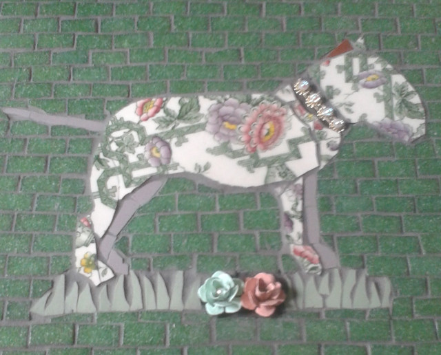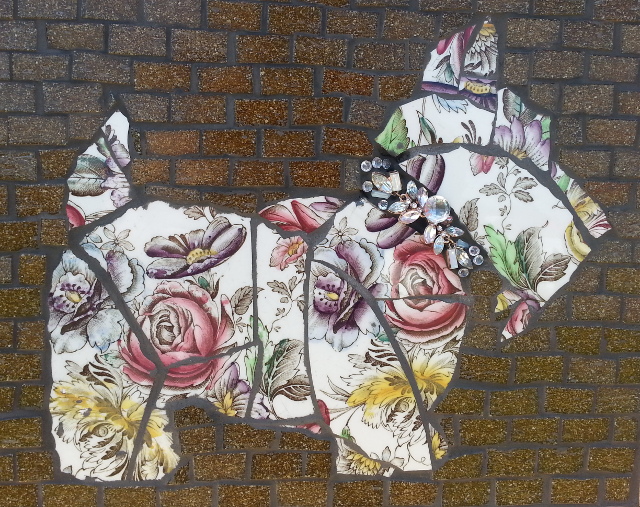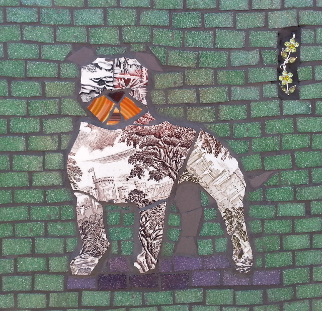 Pat's fabulous dog mosaics created using vintage and recycled china make a unique gift for a dog lover.