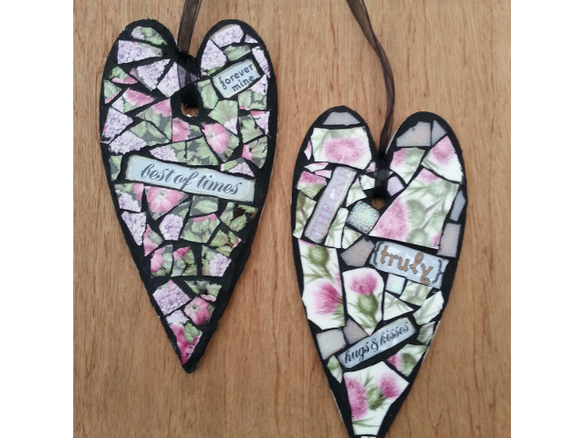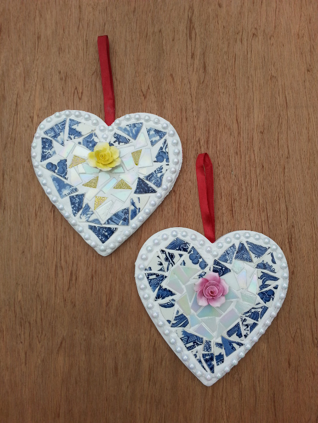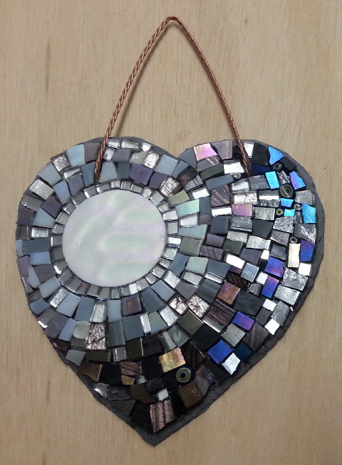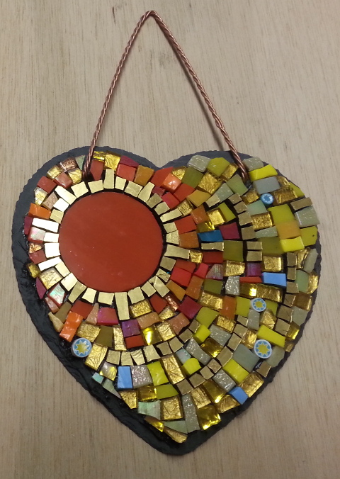 Contains all you need to create a 15cm mosaic heart to hang on the wall.