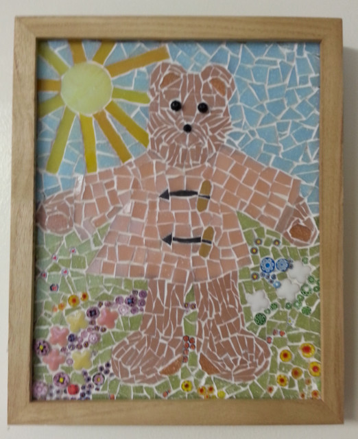 Sharing a love of crafts we work together selling our hand crafted goods and mosaics at various fairs and festivals throughout East Anglia. Sadly this has not been possible during the last year due to the Covid-19 outbreak. However, earlier in the year Pat created a wonderful depiction of hares in the moonlight, using mirrored glass for the shimmering moon effect and Julie's latest project was a commission incorporating bees and a sunflower.